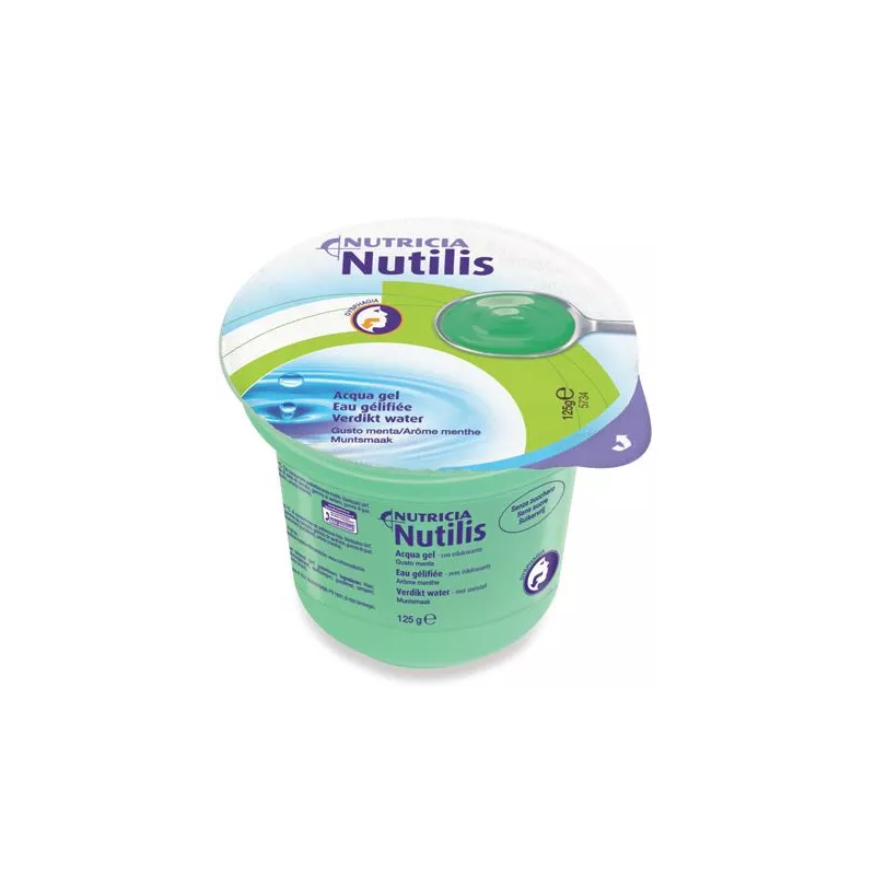 Descrizione Bevanda a consistenza gelatinosa e scivolosità adeguata per favorire la deglutizione. Nutilis Aqua gel è pronta all’uso, con proprietà di resistenza all’amilasi*. Apporta il 98% di acqua, è senza zucchero, priva di glutine e di lattosio.