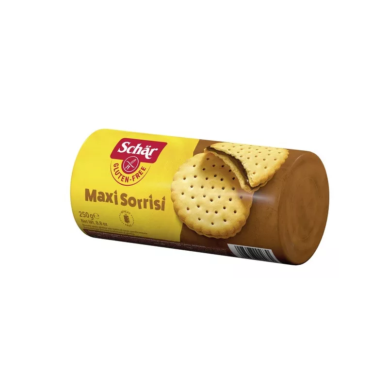 Descrizione Biscotti senza glutine con crema al cacao.
