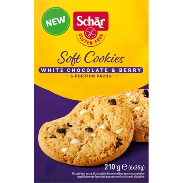 glutine, incredibilmente morbidi e dal sapore intenso, una deliziosa combinazione di pezzetti di frutta e fiocchi di cioccolato bianco e privi di olio di palma.