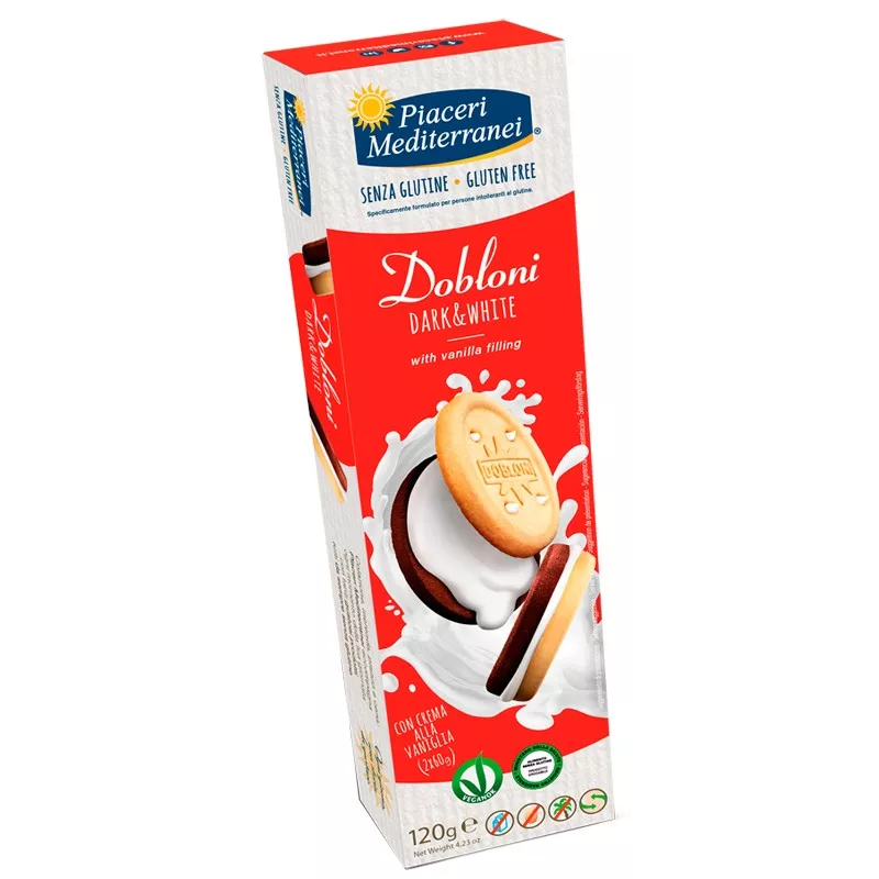 Un biscotto bianco e uno nero racchiudono una crema alla vaniglia.