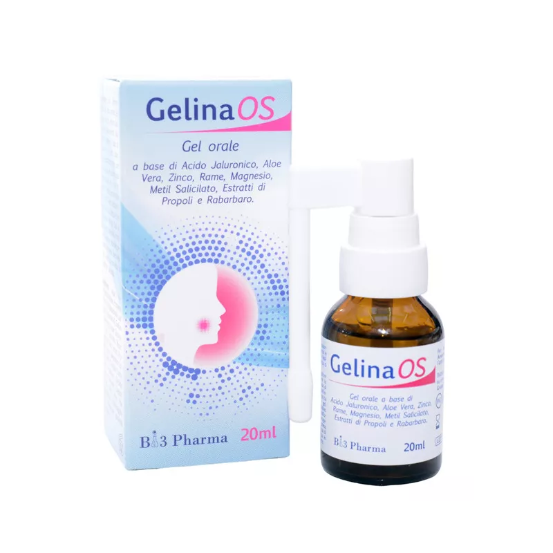 Gel lenitivo orale a base di acido ialuronico, aloe vera, zinco, rame, magnesio, metil salicilato, estratti di propoli, rabarbaro e betaglucano.
