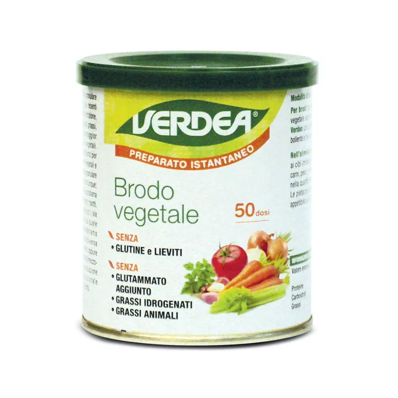 Descrizione Verdea è un preparato granulare istantaneo per brodo vegetale raccomandato anche per diete povere di grassi, meno additivi e soprattutto un maggior equilibrio tra proteine animali e vegetali. Il brodo vegetale Verdea è composto per oltre il 50% da estratto di proteine vegetali e non contiene grassi animali. Il brodo vegetale Verdea può essere utilizzato da chiunque; è pratico sia nell'alimentazione quotidiana per insaporire le pietanze (minestre, risotti, carni alla griglia o arrosto, sughi, eccetera), sia come brodo tal quale quando desideriamo una bevanda diversa dal solito caffè, oppure nell'intervallo di mezzogiorno in associazione con il tradizionale panino o pizzetta.