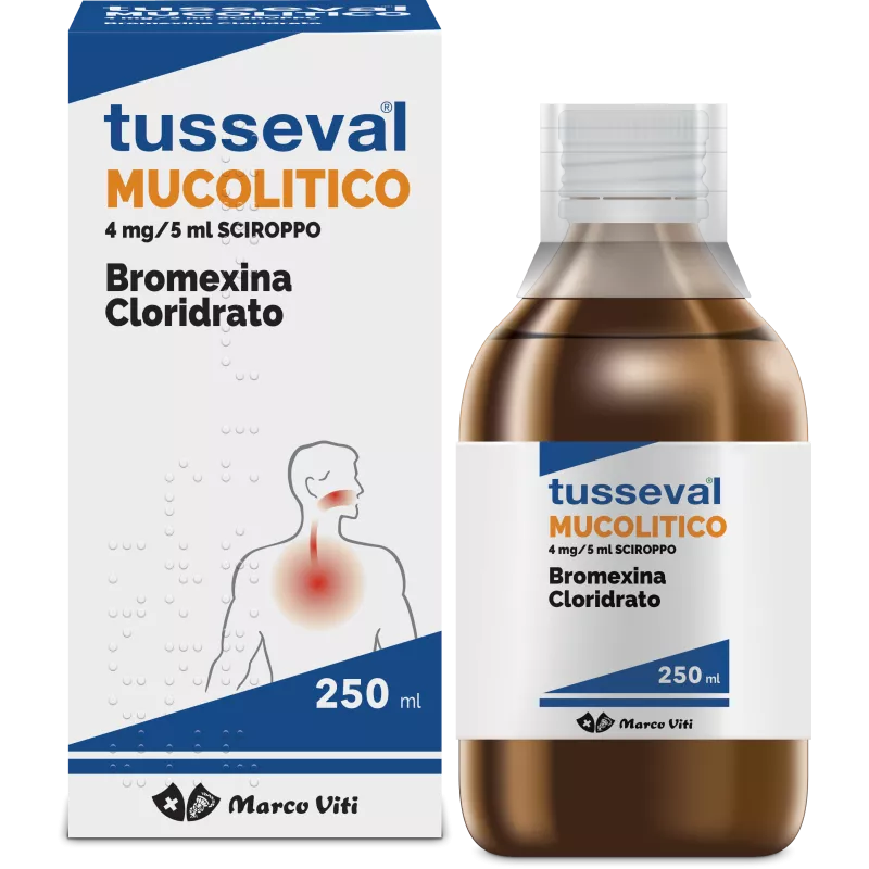 TUSSEVAL MUCOLITICO contiene il principio attivo bromexina cloridrato che appartiene al gruppo dei medicinali ad azione mucolitica e agisce fluidificando i depositi di muco viscoso nelle vie respiratorie facilitandone così l'eliminazione.