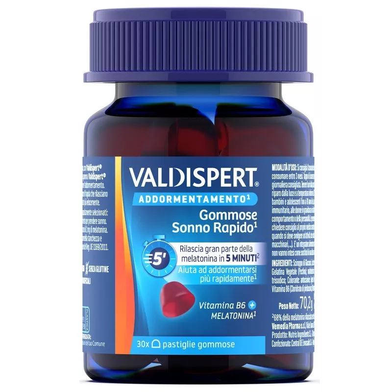 Si presenta sotto forma di pastiglie gommose dal gradevole sapore di fragola che rilasciano gran parte della melatonina in 5 minuti aiutando ad addormentarti più velocemente.