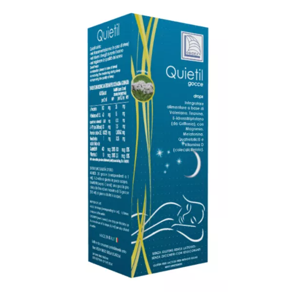 Integratore alimentare a base di estratti vegetali con teanina, valeriana, magnesio, 5-HTP (da griffonia), melatonina e Quatrefolic (folato) che contribuisce alla normale funzione psicologica e vitamina D (colecalciferolo). Senza alcool. Senza zuccheri, con edulcoranti.
