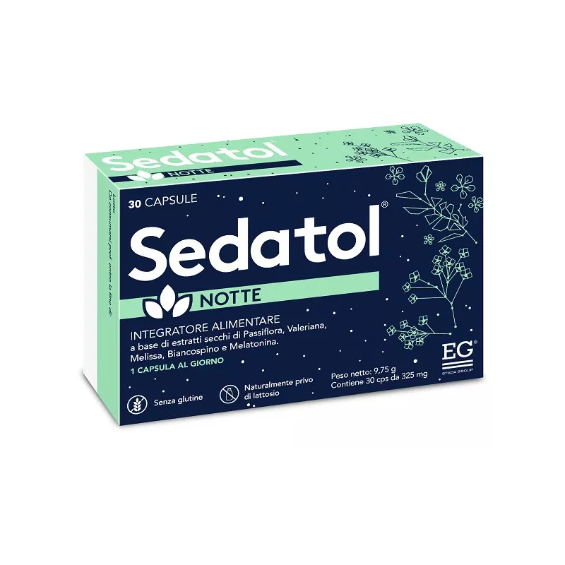 Ingredienti Agente di rivestimento: idrossipropilmetilcellulosa, calcio carbonato (E170), ottenilsuccinato di amido e sodio (E1450), carragenina (E407), potassio acetato (E261); valeriana (Valeriana officinalis L., radice) estratto secco (titolato min. 0,42% in acidi valerenici), melissa (Melissa officinalis L., foglie) estratto secco (titolato min. 2% in acido rosmarinico), biancospino (Crataegus oxycantha Medicus, fiori e foglie) estratto secco (titolato min. 1,5% in vitexina-2-ramnoside), passiflora (Passiflora incarnata L., erba con fiori) estratto secco (titolato min, 4% in flavonoidi totali espressi in vitexina); agenti di carica: fosfato dicalcico; agenti antiagglomeranti: biossido di silicio, sali di magnesio di acidi grassi; aroma, melatonina.