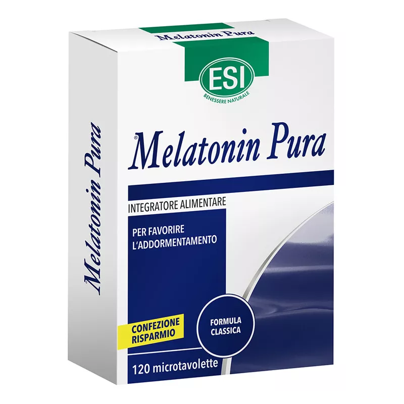 Integratore alimentare di melatonina. La melatonina contribuisce alla riduzione del tempo richiesto per prendere sonno. L'effetto benefico si ottiene con l’assunzione, poco prima di coricarsi, di 1 mg di melatonina.