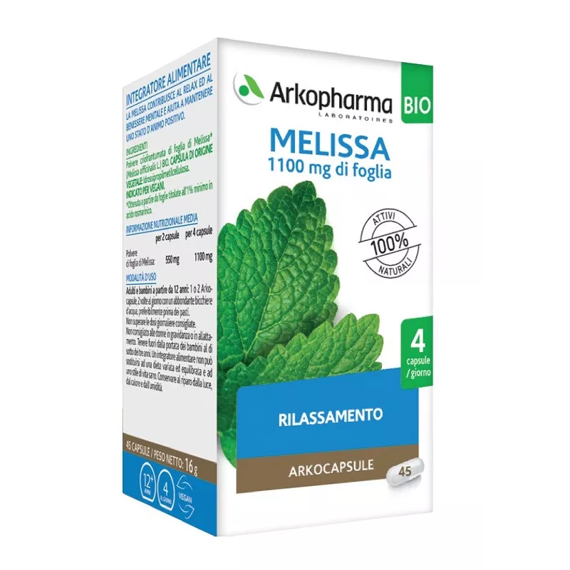 Descrizione Integratore alimentare a base di melissa. Contribuisce al relax ed al benessere mentale e aiuta a mantenere uno stato d'animo positivo.
