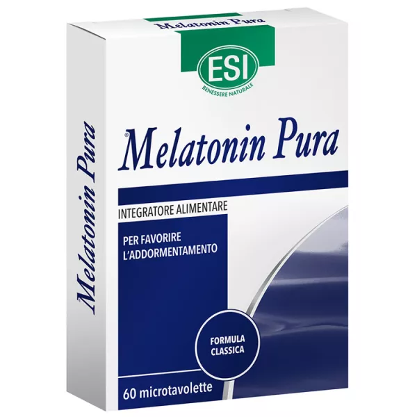 Integratore alimentare di melatonina. La melatonina contribuisce alla riduzione del tempo richiesto per prendere sonno. L'effetto benefico si ottiene con l’assunzione, poco prima di coricarsi, di 1 mg di melatonina.