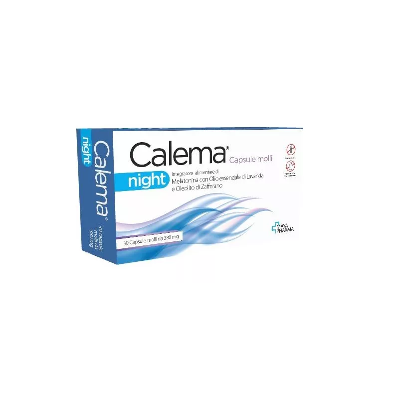La melatonina contribuisce alla riduzione del tempo richiesto per prendere sonno. L'effetto benefico si ottiene con l'assunzione, poco prima di coricarsi, di 1 mg di melatonina (pari a 1 capsula molle di Calema night). La lavanda è utile per conseguire uno stato di rilassamento.