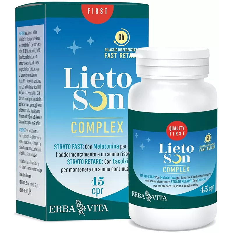 Descrizione Lietoson Complex compresse è un integratore alimentare a base di estratti vegetali, melatonina e vitamine. Lo strato fast è a base di valeriana e melatonina, che contribuisce alla riduzione del tempo richiesto per prendere sonno; la griffonia, inoltre, favorisce il benessere mentale. Lo strato retard di 6 ore è a base di escolzia e luppolo, utili per il mantenimento del sonno.