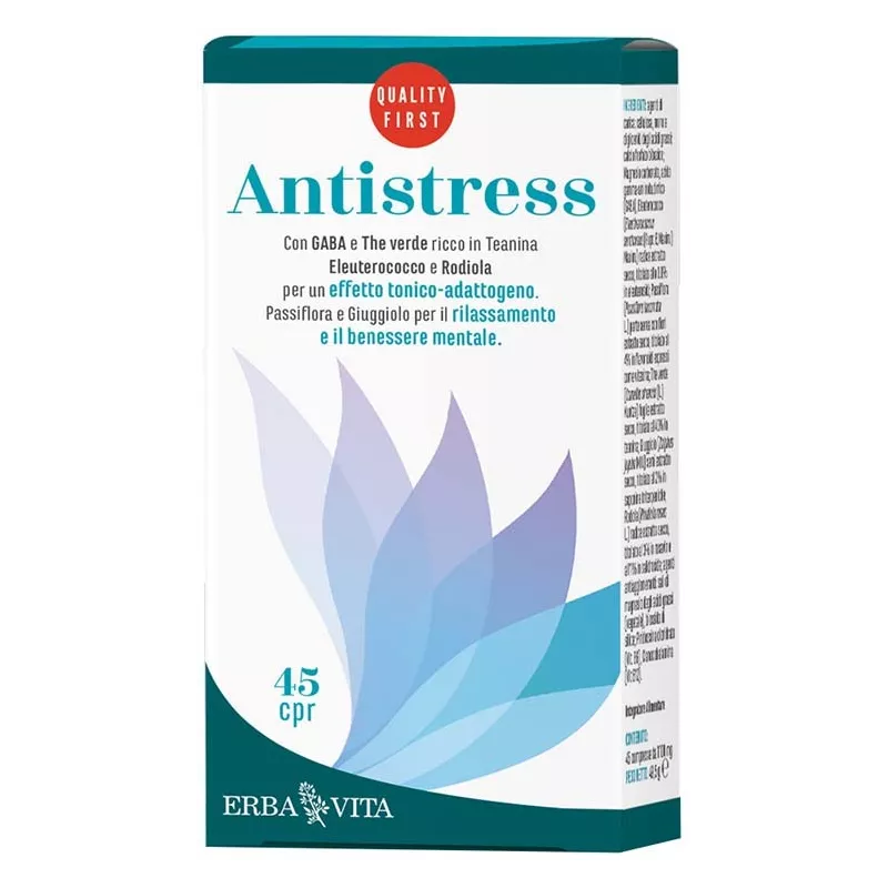 Ingredienti Agenti di carica: cellulosa, mono e digliceridi degli acidi grassi, calcio fosfato bibasico; magnesio carbonato, acido gamma-aminobutirrico (GABA), eleuterococco (Eleutherococcus senticosus (Rupr. & Maxim.) Maxim.) radice estratto secco, titolato allo 0.8% in eleuterosidi; passiflora (Passiflora incarnata L.) parte aerea con fiori estratto secco, titolato al 4% in flavonoidi espressi come vitexina; tè verde (Camellia sinensis (L.) Kuntze) foglie estratto secco, titolato al 40% in teanina; giuggiolo (Ziziphus jujuba Mill.) semi estratto secco, titolato al 2% in saponine triterpeniche; rodiola (Rhodiola rosea L.) radice estratto secco, titolato al 3% in rosavin e all'1% in salidroside; agenti antiagglomeranti: sali di magnesio degli acidi grassi (vegetale), biossido di silicio; piridossina cloridrato (vitamina B6), cianocobalamina (vitamina B12).