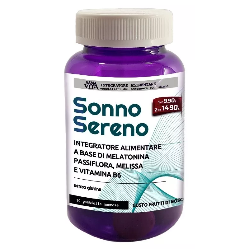 Ingredienti Sciroppo di glucosio, zucchero, acqua, gelatina alimentare; acidificante: acido citrico; passiflora (Passiflora incarnata L., parti aeree con fiori) e.s., melissa (Melissa officinalis L., foglie) e.s., olio di girasole, succo concentrato, aroma; agente di rivestimento: cera d’api; vitamina B6 (piridossina cloridrato), melatonina.