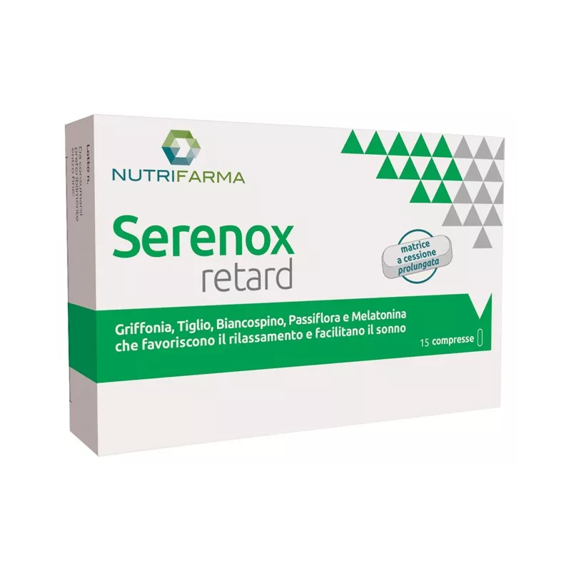 Ingredienti Griffonia [Griffonia simplicifolia (DC.) Baill., semi] e.s tit. al 25% 5-HTP; stabilizzante: acidi grassi; tiglio (Tilia platyphyllos Scop., fiori) e.s. tit. al 5% flavonoidi, passiflora (Passiflora incarnata L., parte aerea) e.s. tit. al 4% flavonoidi, biancospino [Crataegus laevigata (Poir.) DC.], fiori e foglie e.s. tit. 3% vitexina; agente di carica: cellulosa microcristallina; agenti antiagglomeranti: sali di magnesio degli acidi grassi, biossido di silicio; melatonina.