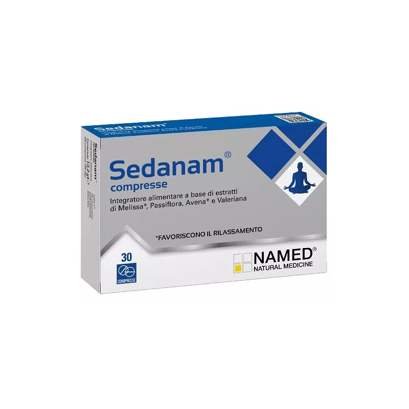 avena (Avena sativa L.) frutto e.s., passiflora (Passiflora incarnata L.) parti aeree con fiori e.s., melissa (Melissa officinalis L.) foglie e.s.; agenti antiagglomeranti: carbossimetilcellulosa sodica reticolata, biossido di silicio, sali di magnesio degli acidi grassi; agenti di rivestimento: idrossipropilmetilcellulosa, glicerolo.