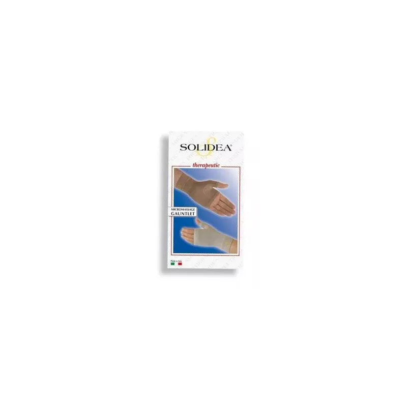 Palmare elastocompressivo ambidestro per il trattamento conservativo e terapeutico del linfedema della mano e dell’avambraccio. Realizzato in speciale tessuto brevettato ad onde micromassaggianti che attiva la microcircolazione. La compressione graduata forte stimola il corretto ritorno venoso e linfatico agendo efficacemente nella riduzione dell’edema. Il tessuto ad onde micromassaggianti permette la naturale traspirazione cutanea con un effetto areato, mantenendo la pelle asciutta e protetta. Può essere indossato sia da solo che in abbinamento ad un bracciale elastocompressivo.