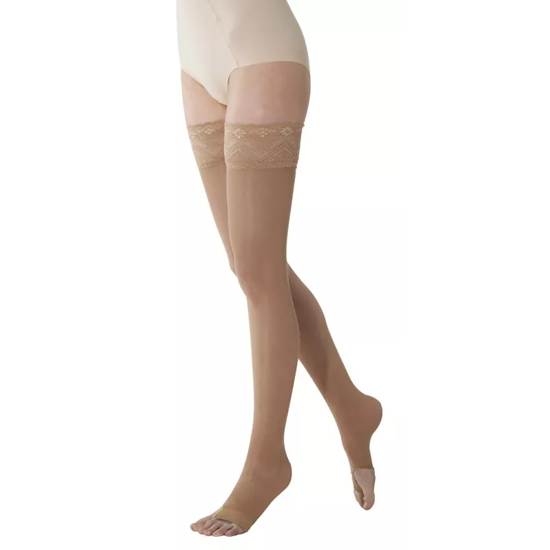 La punta aperta è realizzata con una tecnologia che permette una perfetta vestibilità, mantenendo la calza perfettamente posizionata. La punta aperta garantisce una maggiore freschezza e un piacevole benessere ai piedi e alle gambe anche nei mesi più caldi rendendo l'utilizzo delle calze più confortevole.