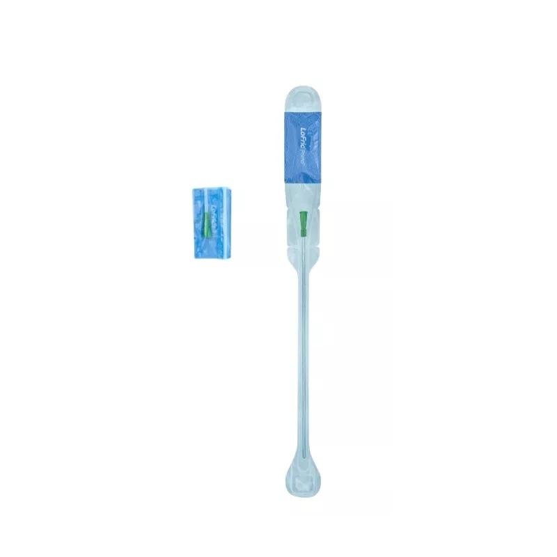 Catetere intermittente idrofilo. Viene confezionato con la sua soluzione salina sterile per l'attivazione istantanea e può essere utilizzato ovunque. Ha una guida di inserimento integrata che consente la tecnica no-touch. È ripiegabile, facile e discreto da portare con sé.