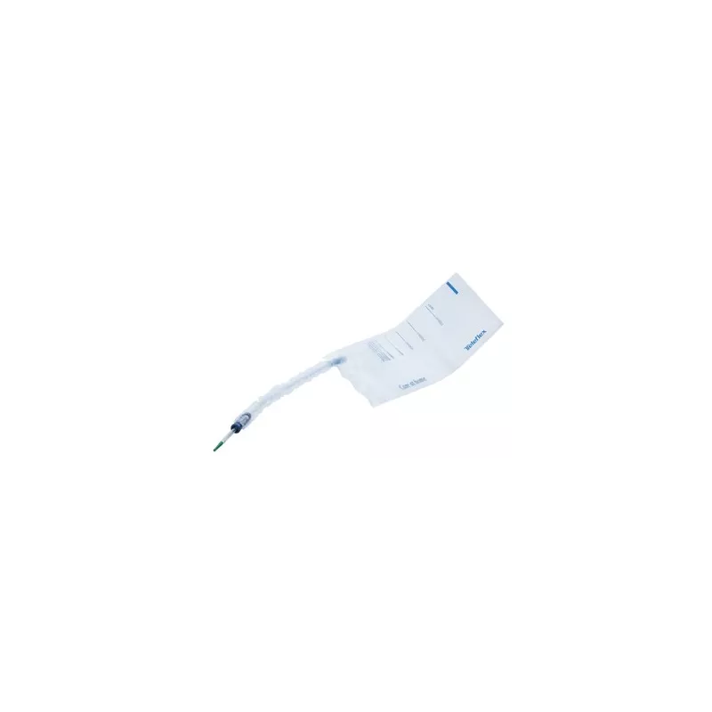 Formato Catetere idrofilico pre-attivato, guaina di protezione completa di introduttore/punto di presa ergonomico e sacca di raccolta urina integrata completa di valvola anti reflusso, anello di presa e sistema di apertura a strappo.