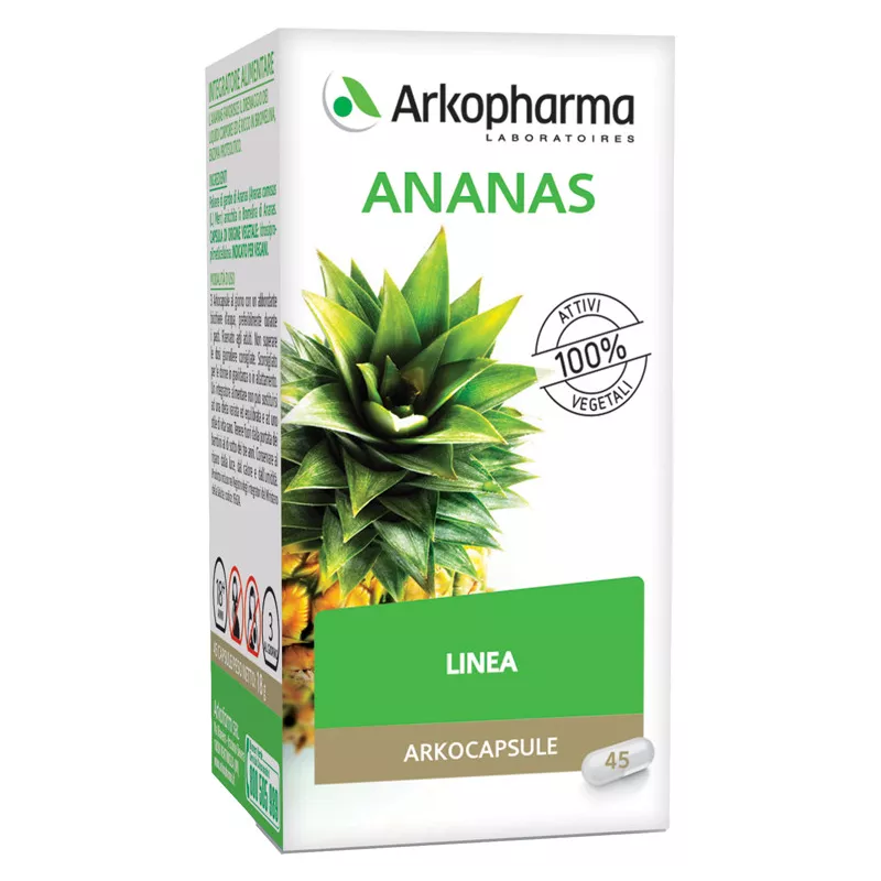Integratore alimentare a base di gambo d'ananas. L’ananas favorisce il drenaggio dei liquidi corporei ed è ricco in Bromelina, enzima proteolitico.