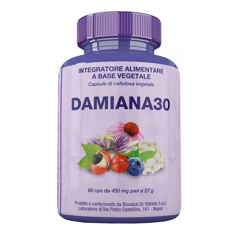 Ingredienti Damiana (Turnera diffusa Will.) foglie e sommità e.s. 350 mg, amido pregelatinizzato; costituenti delle capsule: cellulosa vegetale.