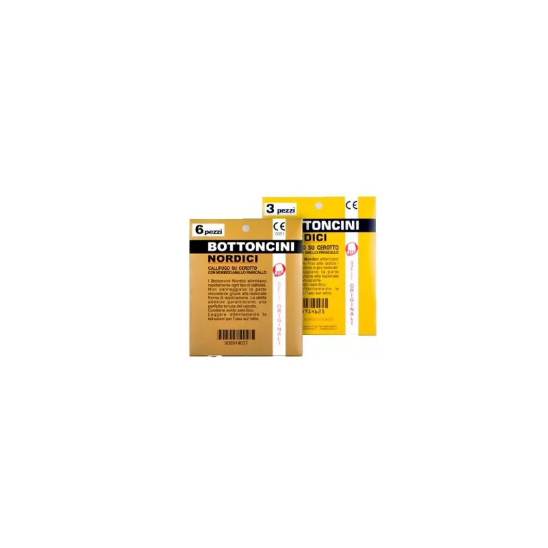 I Bottoncini Nordici eliminano ogni tipo di callosità e non danneggiano la parte circostante il callo grazie alla razionale forma di applicazione. Le alette adesive garantiscono una perfetta tenuta del cerotto.