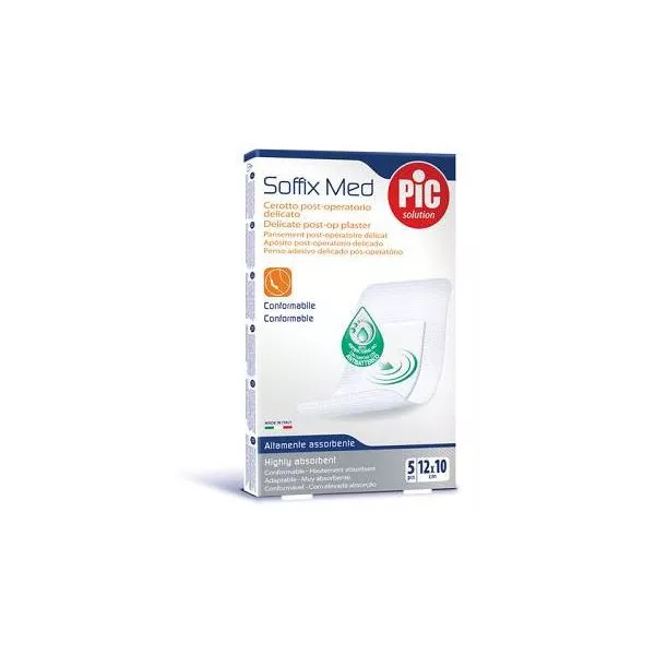 CEROTTO PIC SOFFIX MED IN TNT CON TAMPONE CENTRALE ASSORBENTE STERILE MONOUSO 10X12 CM ANTIBATTERICO 5 PEZZI