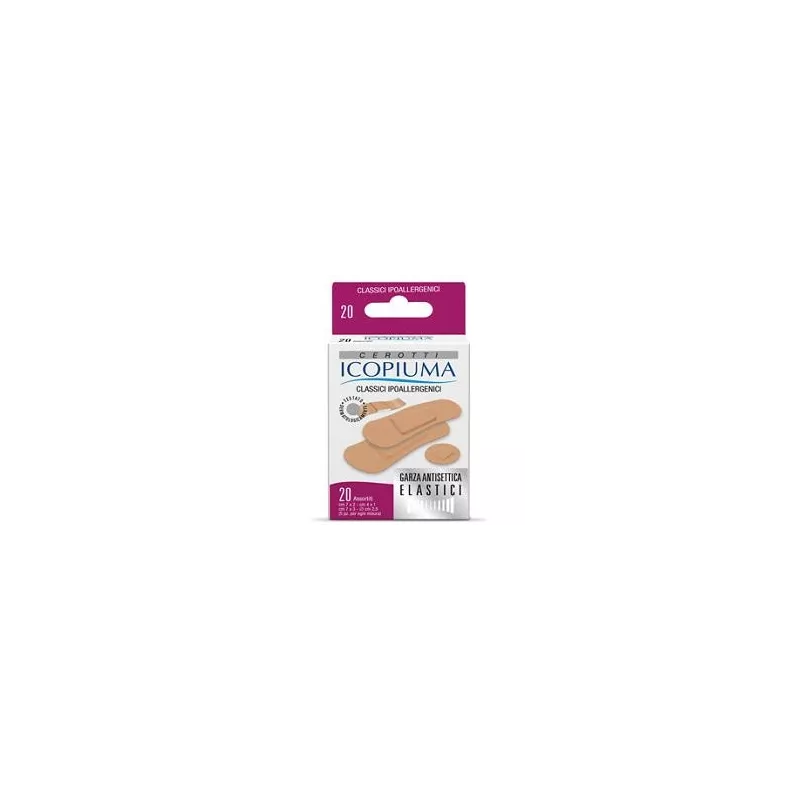 Cerotti classici ipoallergenici 4 formati: 7 x 2 cm, 4 x 1 cm, 7 x 3 cm, ø 2,5 cm.