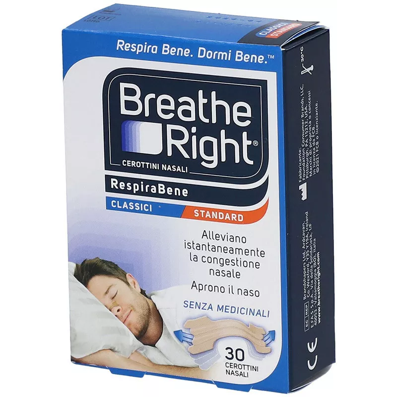 Questo prodotto è un dispositivo medico costituito da un cerotto adesivo con strisce elastiche che si sollevano allargando delicatamente i passaggi nasali. Donano sollievo immediato dalla congestione nasale causata da allergie, raffreddore e setto deviato. Liberano i condotti nasali per permettere fino al 31% in più di flusso d'aria, possono aiutare a ridurre o anche eliminare il russamento.