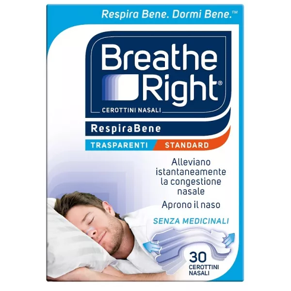 Cerotto adesivo con strisce elastiche che si sollevano allargando delicatamente i passaggi nasali. Donano sollievo immediato dalla congestione nasale causata da allergie, raffreddore e setto deviato.