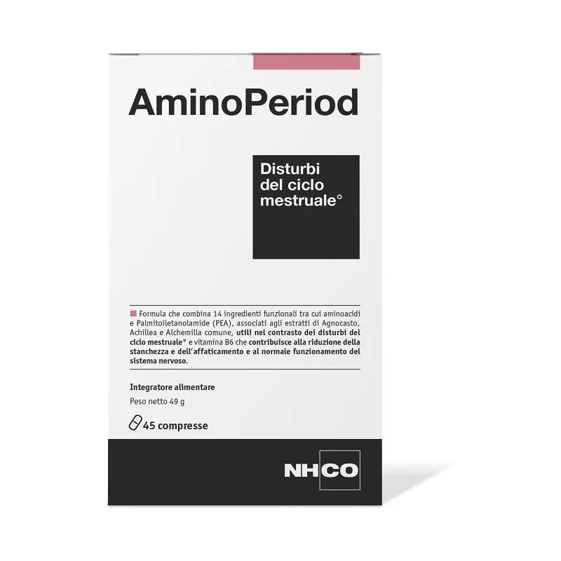 Descrizione Formula che combina 14 ingredienti funzionali tra cui aminoacidi e palmitoiletanolamide (PEA), associati agli estratti di agnocasto, achillea e alchemilla comune, utili nel contrasto dei disturbi del ciclo mestruale e vitamina B6 che contribuisce alla riduzione della stanchezza e dell’affaticamento e al normale funzionamento del sistema nervoso.
