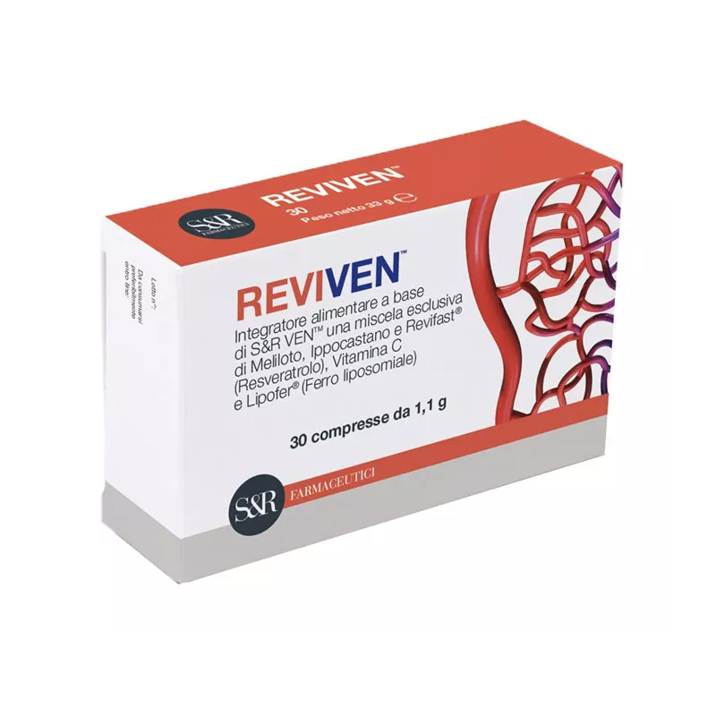 Descrizione Integratore alimentare a base di S&R VEN [miscela esclusiva di meliloto, ippocastano e Revifast® (resveratrolo)], vitamina C e Lipofer (ferro liposomiale).