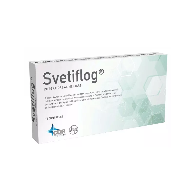 Ingredienti Ananas [Ananas comosus (L.) Merr.] stipite estratto secco, attività enzimatica bromelina 2.400 GDU/g; agenti di carica: cellulosa, calcio fosfato bibasico; Boswellia (Boswellia serrata Roxb. ex Colebr.) resina estratto secco titolato al 65% in acidi boswellici, Centella (Centella asiatica L.) foglie estratto secco titolato al 20% in triterpeni totali come asiaticoside, cardo mariano [Silybum marianum (L.) Gaertn.] frutto estratto secco titolato all'80% in silimarina; agenti antiagglomeranti: sali di magnesio degli acidi grassi (vegetale), biossido di silicio; ippocastano (Aesculus Hippocastanum L.) corteccia estratto secco titolato al 20% in escina.
