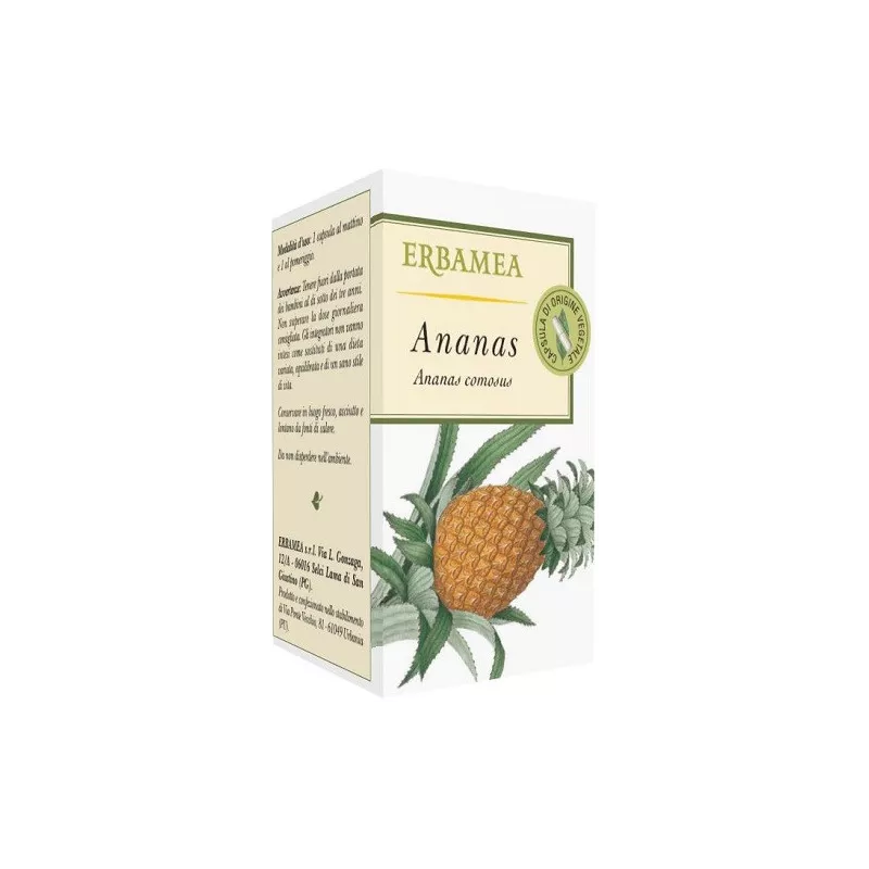 Ingredienti Ananas (Ananas comosus L. Merr.) gambo polvere 68,5%; costitutente della capsula: idrossipropilmetilcellulosa. Ananas (Ananas comosus L. Merr.) gambo estratto secco* (attività enzimatica espressa come bromelina 250 GDU/g) 9,4%. Agente antiagglomerante: sali di magnesio degli acidi grassi.