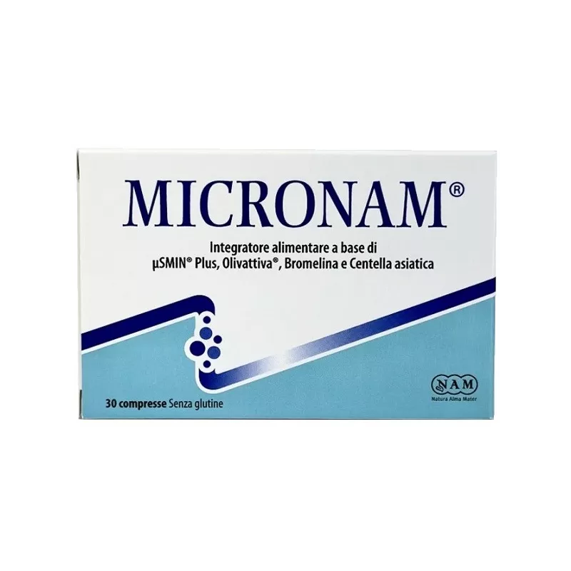 Descrizione Integratore alimentare a base di µSMIN Plus (diosmina micronizzata e tamponata), Olivattiva (estratto di olivo foglie titolato al 40% in oleuropeina), bromelina, centella asiatica e vitamina C. L'olivo favorisce la normale circolazione del sangue e la regolarità della pressione arteriosa e svolge un'azione antiossidante; la centella asiatica supporta la funzionalità del microcircolo contribuendo ad alleviare la sensazione di pesantezza delle gambe; la vitamina C contribuisce alla normale formazione del collagene per la normale funzione dei vasi sanguigni.