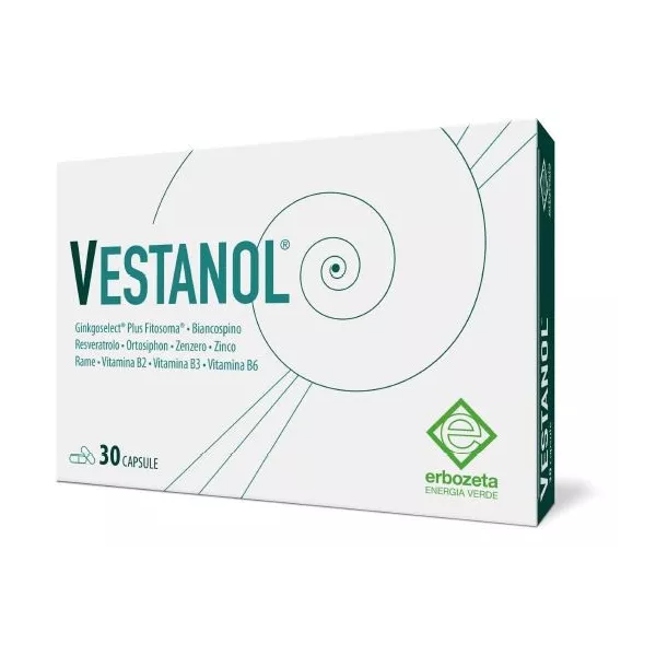 Descrizione Integratore alimentare a base di Ginkgoselect Plus Fitosoma, biancospino, zenzero, ortosiphon, resveratrolo, vitamine del gruppo B, zinco e rame.