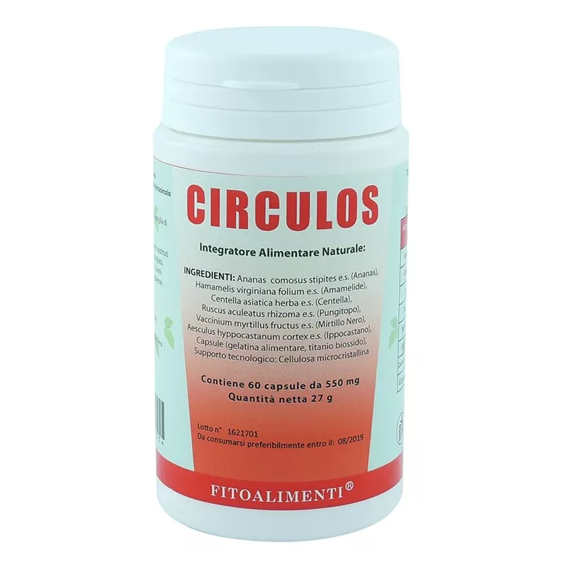 Ingredienti Ananas comosus stipites e.s. (ananas), Hamamelis virginiana folium e.s. (amamelide), Centella asiatica herba e.s. (centella), Ruscus aculeatus rhizoma e.s. (pungitopo), Vaccinium myrtillus fructus e.s. (mirtillo nero), Aesculus hyppocastanum cortex e.s. (ippocastano); capsule (gelatina alimentare, titanio biossido); supporto tecnologico: cellulosa microcristallina.