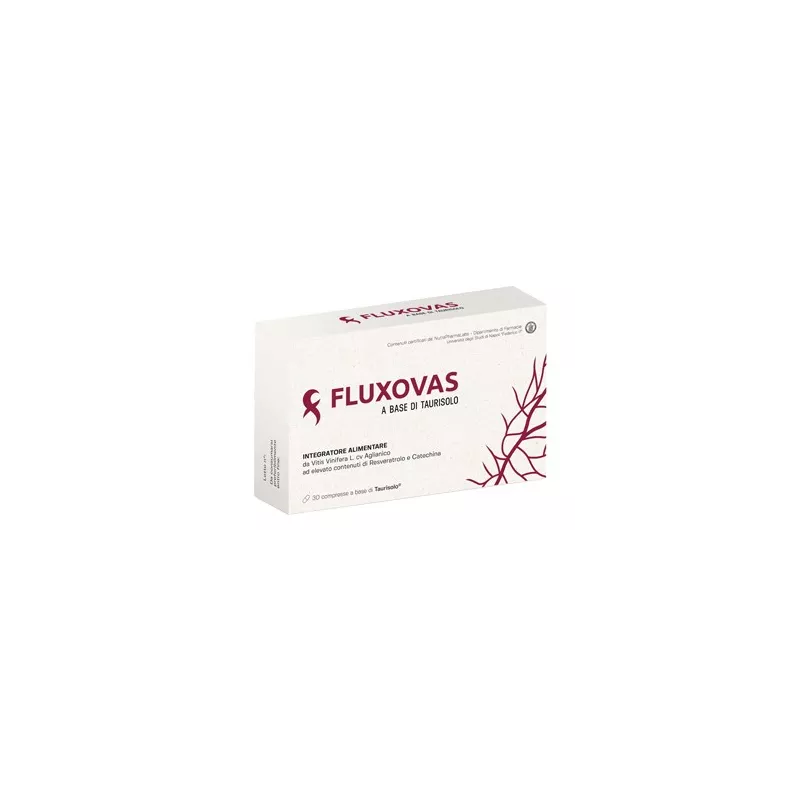 Descrizione Fluxovas, integratore alimentare a base di "Taurisolo", estratto polifenolico da vinacce di Vitis Vinifera (cv Aglianico), è in grado di regolare la corretta funzionalità dell'apparato cardiovascolare e contribuisce alla normale funzione del microcircolo.