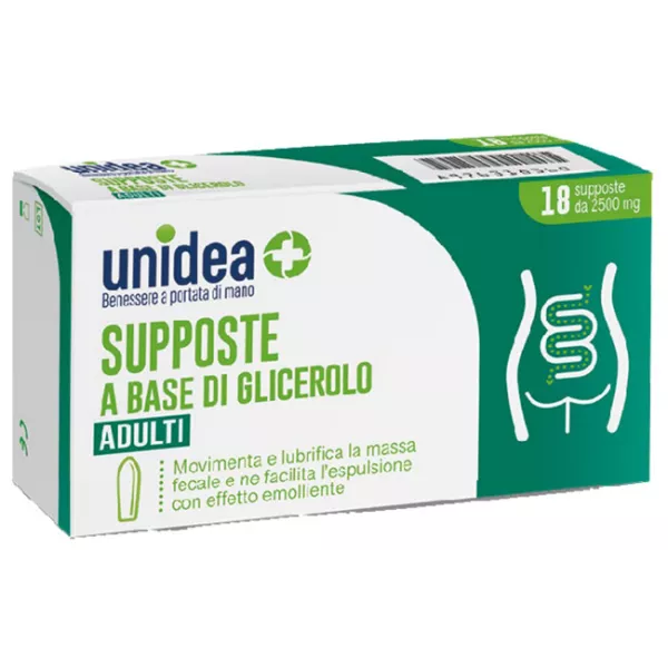 Le supposte a base di glicerolo Unidea, movimentano e lubrificano la massa fecale e ne facilitano l’espulsione con effetto emolliente.