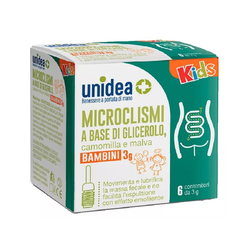 I Microclismi Unidea, movimentano e lubrificano la massa fecale e ne facilita l’espulsione con effetto emolliente.