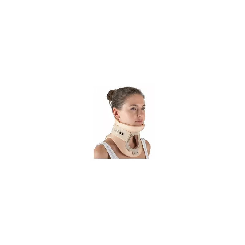 Dispositivo medico indicato per traumi cervicali, distorsioni cervicali, discopatie cervicali, fase post-operatoria della chirurgia cervicale, fratture cervicali, neuropatie di origine cervicale, osteoartrosi e artrite reumatoide del tratto cervicale. Struttura bivalva in schiuma di plastazote ipoallergenico, latex-free, con rinforzi rigidi anteriori e posteriori. Struttura sagomata con 4 punti di appoggio: mento, sterno, nuca, dorso. Foro tracheale. Valva posteriore con fori per l’areazione. Sistema di chiusura a strappo. Imbottitura mentoniera. Radiotrasparente e impermeabile.