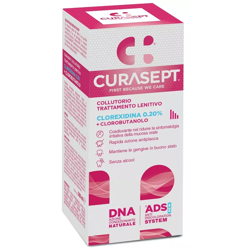 CURASEPT ADS Collutorio trattamento lenitivo è una soluzione pronta all’uso contenente: