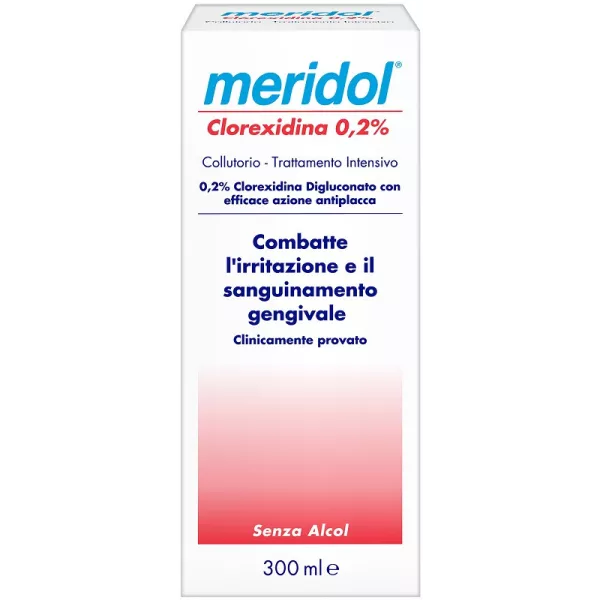 Collutorio alla clorexidina, principio attivo ampiamente utilizzato dai dentisti per il controllo dei problemi gengivali, come l'irritazione e il sanguinamento delle gengive.