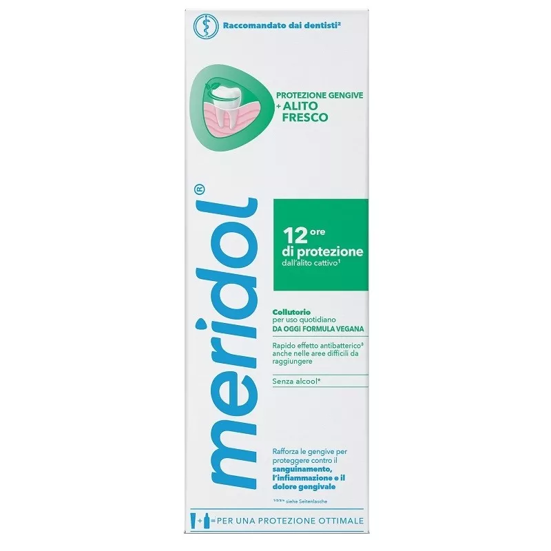 Collutorio Meridol che combatte il sanguinamento delle gengive, l'infiammazione e l'alito cattivo agendo sulla causa principale, non solo sui sintomi.