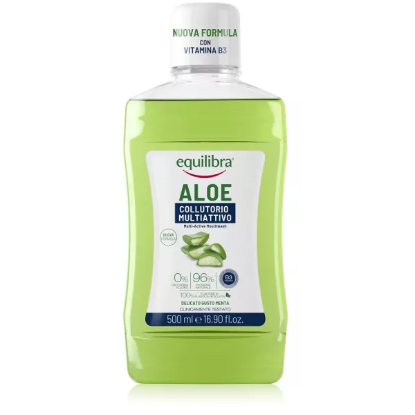 Collutorio multiattivo combina l’azione lenitiva dell’aloe vera, presente in formula in quantità pari al 10% del succo, della malva e della vitamina B3 all'azione antisettica dell'olio di tea tree. Lo xilitolo inoltre, riducendo l’acidità del cavo orale, contrasta la proliferazione dei batteri responsabili della formazione di placca e carie. Il tetrapotassio pirofosfato protegge i denti dal tartaro, il mentolo rinfresca naturalmente il cavo orale. Utilizzato con regolarità, protegge i denti dalla carie e dal tartaro, aiuta a prevenire i disturbi gengivali e assicura un alito fresco.