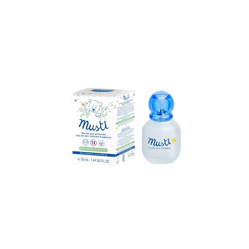 Specificamente formulata per essere utilizzata fin dalla nascita, l'Acqua Profumata Musti, piacevole e leggera, è un'acqua senza alcool, con note d'agrumi accostate alla dolcezza della rosa e del lillà su un fondo delicatamente ambrato. Principali attivi di origine naturale: