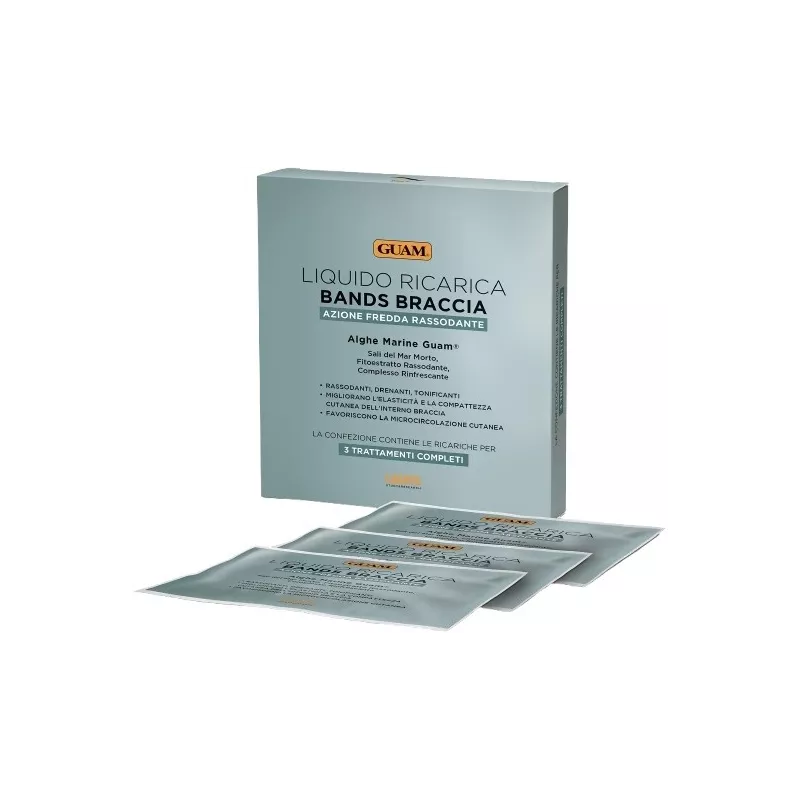 Liquido ricarica bands braccia, azione fredda rassodante. Alghe marine guam, sali del mar morto, fitoestratto rassodante e complesso rinfrescante.