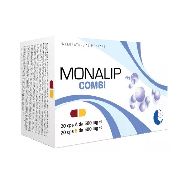 Avvertenze Tenere fuori dalla portata dei bambini al di sotto dei tre anni. Per l’uso del prodotto si consiglia di sentire il parere del medico. Non superare la dose giornaliera raccomandata. Non assumere una quantità giornaliera di monacoline da riso rosso fermentato pari o superiore a 3 mg. Monalip combi non deve essere assunto dalle donne in gravidanza o in allattamento, dai bambini di età inferiore ai 18 anni e dagli adulti di età superiore ai 70 anni. Consultare il medico sul consumo di questo prodotto se si manifestano problemi di salute. Il preparato non deve essere consumato se si assumono medicinali per abbassare il colesterolo né se si stanno già assumendo altri prodotti contenenti riso rosso fermentato. In caso di alterazioni della funzione epatica, biliare o di calcolosi delle vie biliari, l’uso del prodotto è sconsigliato. Non usare per periodi prolungati senza consultare il medico. Se si stanno assumendo farmaci, è opportuno sentire il parere del medico. Gli integratori non vanno intesi come sostituti di una dieta variata, equilibrata e di un sano stile di vita.