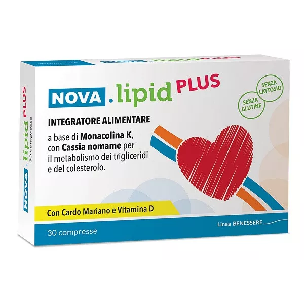Integratore alimentare a base di monacolina K da riso rosso fermentato, con Cassia nomame per il metabolismo dei trigliceridi e del colesterolo.
