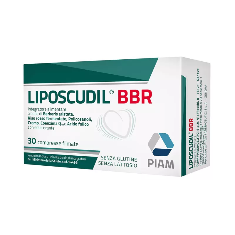 Berberina da corteccia da rami di Berberis aristata DC.; agenti di carica: cellulosa, fosfato dicalcico; riso rosso (Oryza sativa L., seme) fermentato con Monascus purpureus estratto secco tit. al 3% in monacoline totali; agenti di rivestimento: idrossipropilmetilcellulosa, talco, polietilenglicole; coenzima Q10; agenti antiagglomeranti: biossido di silicio, sali di magnesio degli acidi grassi; policosanoli da canna da zucchero (Saccharum officinarum L., succo) e.s. tit. al 60% in octasanolo, picolinato di cromo, acido folico (acido pteroil-monoglutammico); edulcorante: sucralosio; coloranti: ossidi di ferro e idrossidi di ferro, carbonato di calcio.